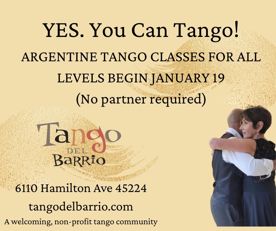 Tango del Barrio is Cincinnati’s premier Argentine Tango venue. We are a non-profit, welcoming community of those devoted to sharing the spirit, skills, history, and enjoyment of Argentine Tango as a social dance.